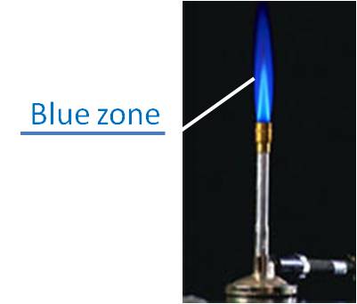 Premixed flame exhibits blue color due to the emission of single-wavelength radiation of the excited molecules formed in the flame.