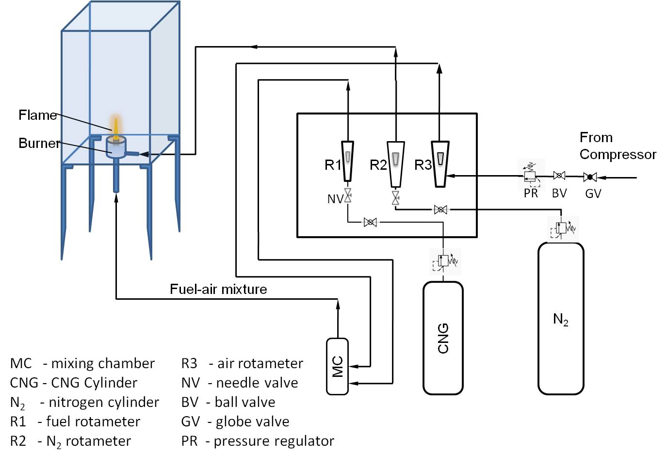 The burner has two inlets; one for the fuel-air mixture and the other one for nitrogen gas, which will act as a curtain to the flame.
