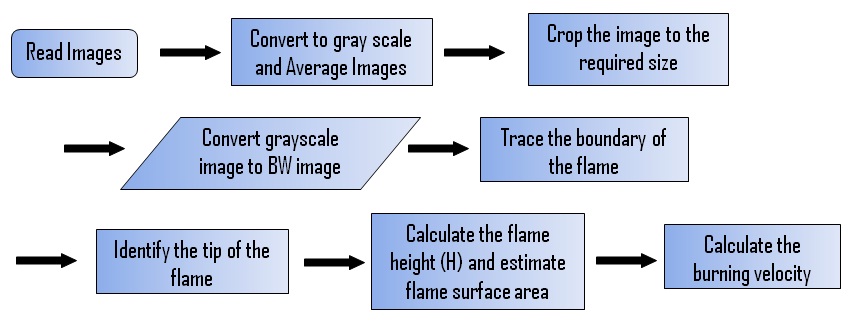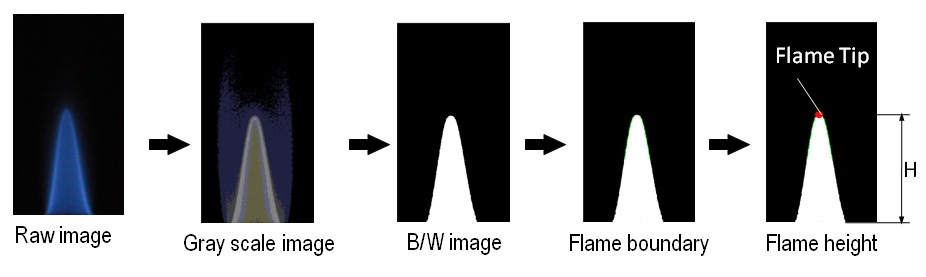 Above figure shows the typical locations at which necessary data for estimating the flame area are extracted.