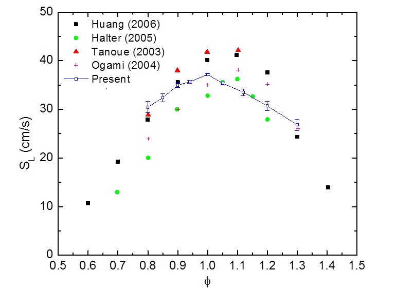 Variation of burning velocity with equivalence ratio for CNG-air mixture