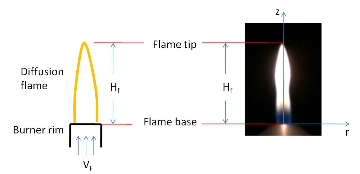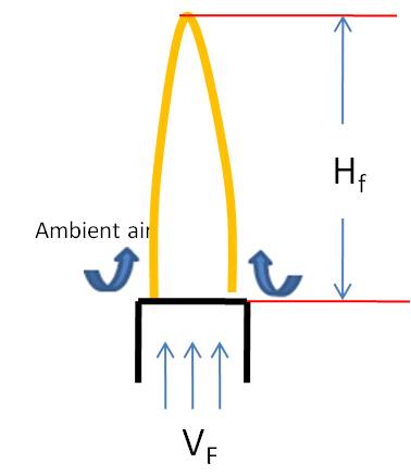 where Hf : flame height, VF: velocity of fuel jet at the burner exit