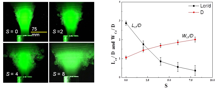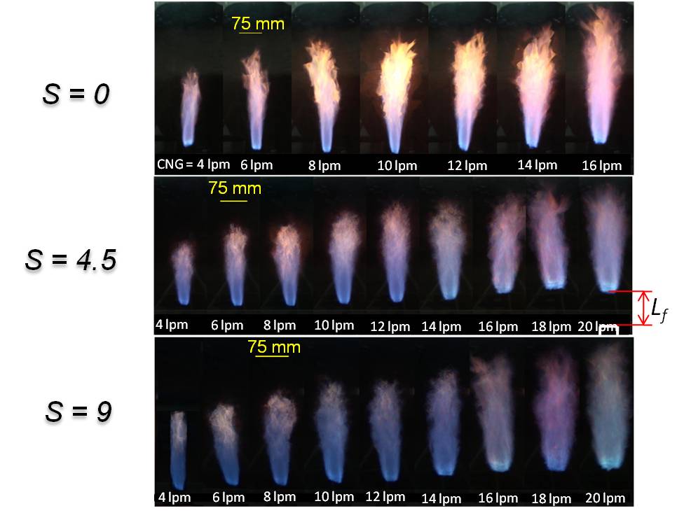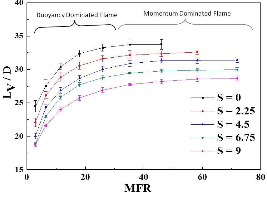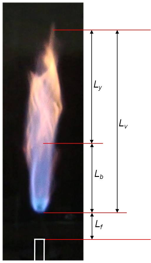 Lift-off height, Lf: The vertical distance from burner exit to the base of lifted off flame.