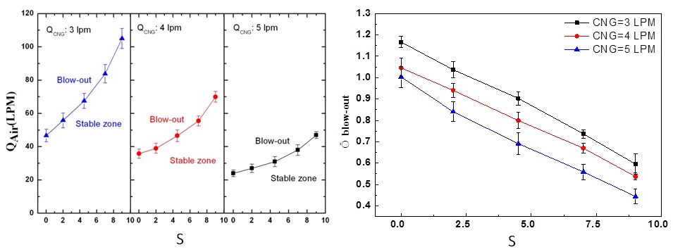 Flame blow-out limits: Maximum air flow rate beyond which flame cannot be stabilized.