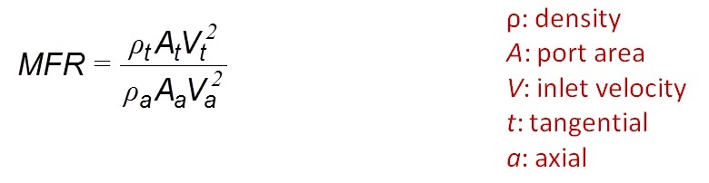 Momentum Flux Ratio, MFR: Ratio of tangential air jet momentum to the axial air jet momentum