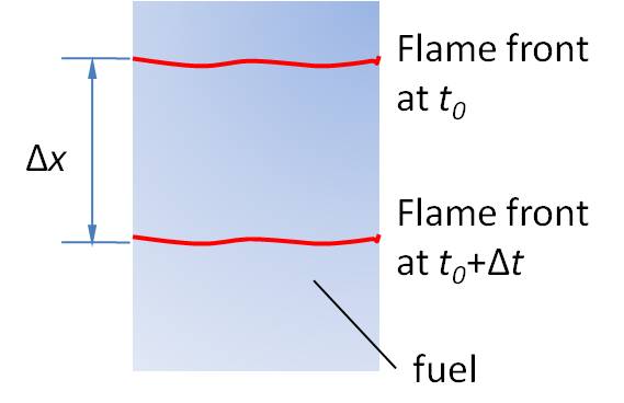 As the flame front propagates in the downward direction, the solid furl surface regresses.