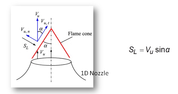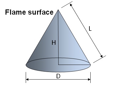 Vu: average flow velocity in tube, At: tube cross sectional area, AF: conical surface area of flame